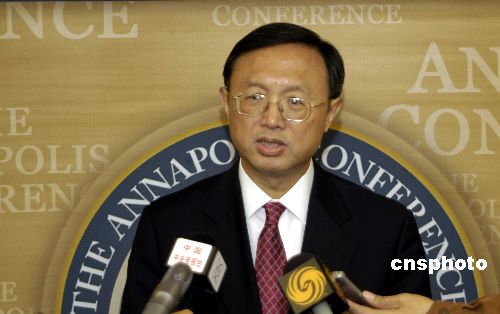 出席中東問題安納波利斯會(huì)議的中國(guó)外長(zhǎng)楊潔篪27日對(duì)中國(guó)媒體表示,中國(guó)政府非常重視安納波利斯會(huì)議,認(rèn)為這次會(huì)議是國(guó)際社會(huì)推動(dòng)解決巴以問題的重大努力。