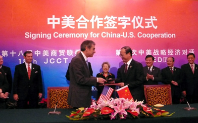 中美關(guān)于便利中國(guó)旅游團(tuán)隊(duì)赴美旅游諒解備忘錄的簽署,是落實(shí)今年5月第二次中美戰(zhàn)略經(jīng)濟(jì)對(duì)話期間兩國(guó)政府簽署的《關(guān)于旅游的聯(lián)合聲明》的重大舉措,是第十八屆中美商貿(mào)聯(lián)委會(huì)和第三次中美戰(zhàn)略經(jīng)濟(jì)對(duì)話的共同成果,標(biāo)志著美國(guó)已正式成為中國(guó)公民組團(tuán)出境旅游目的地國(guó)家。