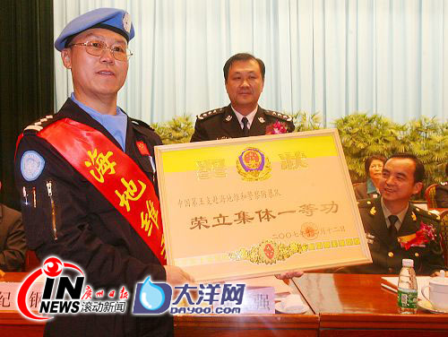 據(jù)了解,此次防暴隊由廣東邊防獨立組建,于今年4月奔赴海地執(zhí)行維和任務(wù),在執(zhí)行維和任務(wù)的8個月時間里,圓滿地完成了各項任務(wù),聯(lián)合國秘書長潘基文稱贊防暴隊是“維護世界和平的使者,中國的驕傲”,10月1日,防暴隊125名隊員被授予聯(lián)合國“和平勛章”,11月27日,聯(lián)海團總警監(jiān)頒發(fā)嘉獎令,使中國防暴隊成為任務(wù)區(qū)9支維和警察防暴隊中,唯一獲此殊榮的單位。(記者 李棟 通訊員 李國良、馬云龍、陳陽紅)