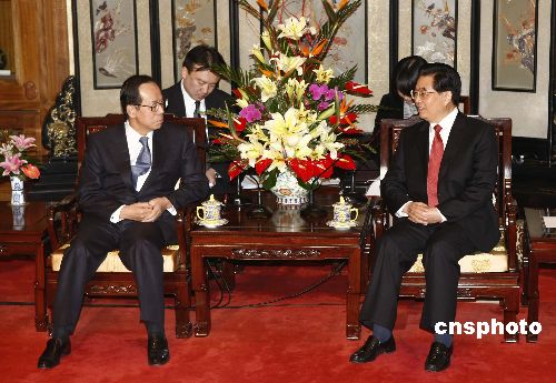 中新網(wǎng)12月28日電 (記者 王巖)中國國家主席胡錦濤今天傍晚在釣魚臺國賓館養(yǎng)源齋會見并宴請了來訪的日本首相福田康夫。