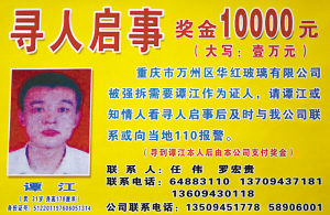 李富華在萬(wàn)州鬧市掛出“史上最牛的尋人啟事”,懸賞萬(wàn)元尋找?guī)瞬鹆怂麖S房的譚某。