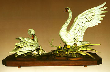 唐龍彬:擺在面前的這一對天鵝禮品叫瓷塑大天鵝,這是美國前總統(tǒng)尼克松在1972年2月21號來訪贈送給毛澤東主席的一個國禮?赡艽蠹叶剂私,當時美國總統(tǒng)來中國訪問,這個事情本身就是一件舉世矚目的大事,因此當時中國也好,美國也好都非常重視這一次尼克松來華訪問,而且把這次訪問看作終端中美兩國友好交往,重新打開這個大門的一個重要事情來看,所以當時雙方政府都做了充分準備。當然首先是在政治上的準備, 其中雙方交換的國禮也是非常重視的。當時我是外交部禮賓司接待處處長,從頭到尾都參與了這項接待和籌備工作,也包括在籌備國禮方面也參與了一些具體工作。當時美方是非常重視,尼克松本人親自抓美方贈送給毛澤東主席的國禮的選擇。