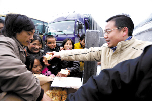 昨日,記者在滯留旅客中,遇見(jiàn)兩位乘坐深圳駛往湖南郴州的長(zhǎng)途大巴的乘客。一位是22歲的張小姐,另一位是61歲的李阿伯,他們同坐一輛大巴回家。沒(méi)想到在途中遇到災(zāi)難后,兩人一打聽(tīng)才知道同一天過(guò)生日。為了銘記這個(gè)難忘的日子,車上的其他乘客到縣城給兩人買了生日蛋糕,一起慶祝生日。