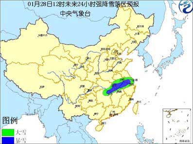 受冷暖空氣的共同影響,預(yù)計今天中午到明天中午,湖南東北部、湖北東部、河南東南部、安徽中南部、江蘇中南部、浙江西北部以及江西北部等地有大雪,其中,湖南東北部、湖北東部、安徽中南部、江蘇南部等地的部分地區(qū)有暴雪。