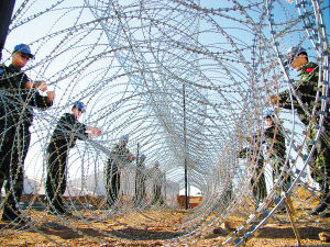 在荷槍實(shí)彈的非盟士兵護(hù)衛(wèi)下,中國(guó)維和官兵迅速投入忙碌的施工作業(yè)當(dāng)中。保障沙石的車輛來回穿梭,卷起陣陣煙塵;構(gòu)建防御工事的工地上,鐵絲網(wǎng)和野戰(zhàn)防御網(wǎng)墻一米米向前推進(jìn);另外一側(cè),一頂頂帳篷也搭建起來……為了趕進(jìn)度,官兵們每次都科學(xué)分工、齊心協(xié)力,盡量提高作業(yè)效率。盡管這樣,在現(xiàn)場(chǎng)指揮的馬建明還是有點(diǎn)兒著急:“大家都加把勁兒!不能讓后續(xù)部隊(duì)到了連住的地方都沒有!”
