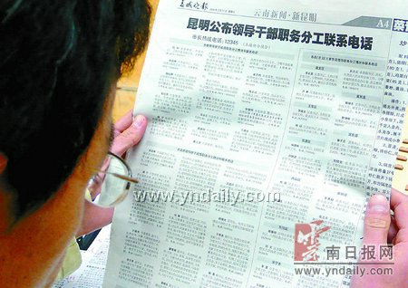 應(yīng):向社會(huì)公布領(lǐng)導(dǎo)的工作電話和職務(wù)分工情況,是加強(qiáng)昆明市軟環(huán)境建設(shè)的一項(xiàng)重要措施,是進(jìn)行政務(wù)公開的一種形式,同時(shí)也是密切黨和政府與人民群眾血肉聯(lián)系的一種方式,使黨和人民群眾緊密聯(lián)系的橋梁更加鞏固。這項(xiàng)工作原來也開展過一些,如市長熱線電話、舉報(bào)投訴電話等,這次是統(tǒng)一起來一并公布。
