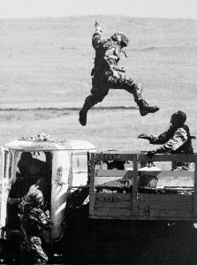 “我們可以釋放兩名人質(zhì),但必須保證我們安全到達(dá)舊樓房!苯(jīng)與“恐怖分子”商量后釋放兩名人質(zhì)。突擊隊(duì)員被迫讓開道路,誘使車輛進(jìn)入伏擊圈內(nèi)。