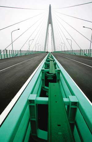 世界最長(zhǎng)的跨海大橋——杭州灣跨海大橋全線貫通,不日將通車。杭州灣跨海大橋是同三國(guó)道跨越杭州灣的便捷通道,北起嘉興市海鹽鄭家埭,止于寧波市慈溪水路灣,全長(zhǎng)36公里。大橋通車后,上海到寧波的陸路距離將縮短120多公里。