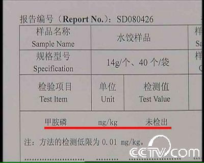 這家工廠的檢驗(yàn)記錄顯示,每一批次的蔬菜在進(jìn)廠前都會(huì)由河北檢驗(yàn)檢疫部門進(jìn)行抽檢或由企業(yè)送檢。相關(guān)的檢測結(jié)果顯示,在生產(chǎn)2007年10月1日和10月20日兩個(gè)批次的豬肉白菜餡餃子之前都進(jìn)行過相關(guān)的檢驗(yàn),洋白菜、大白菜以及韭菜、姜、蒜的檢測中都沒有檢出甲胺磷等高毒高殘留農(nóng)藥。