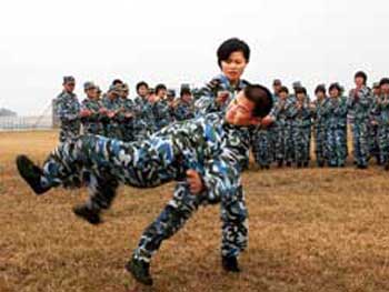 美國(guó)海軍太平洋艦隊(duì)司令拉夫黑德上將第一次到中國(guó)海軍陸戰(zhàn)旅訪問(wèn),想看看女子陸戰(zhàn)隊(duì)員的真功夫。