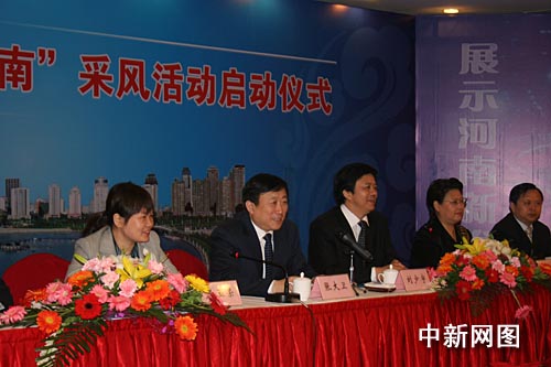 中新網(wǎng)4月16日電 由中共河南省委宣傳部主辦的第七屆“網(wǎng)上看河南”采風(fēng)活動(dòng)16日上午在鄭州正式啟動(dòng),本次活動(dòng)自16日正式開(kāi)始,20日結(jié)束,走訪鄭州,開(kāi)封,洛陽(yáng),新鄉(xiāng)及登封等地。河南省委宣傳部邀請(qǐng)了人民網(wǎng)、新華網(wǎng)、中新網(wǎng)、新浪、搜狐等網(wǎng)站負(fù)責(zé)同志和采編人員參加了此次活動(dòng)。