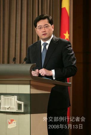 中新網(wǎng)5月13日電 外交部網(wǎng)站消息,5月13日下午,中國外交部發(fā)言人秦剛舉行例行記者會,就四川汶川嚴(yán)重地震災(zāi)害、朝鮮半島核問題等答問。