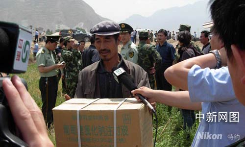 隴南災(zāi)區(qū)收到蘭州軍區(qū)空軍某部空投的物資。 張晟!『钪拘 攝影