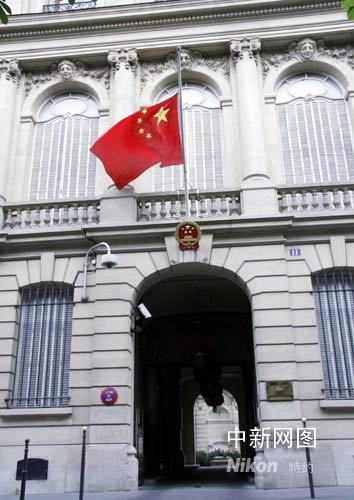 中國駐法使館為汶川遇難同胞舉行悼念儀式。