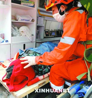 “164個(gè)小時(shí)!”昨日上午10時(shí)30分許,在北川縣城內(nèi),一名國(guó)家地震災(zāi)害緊急救援隊(duì)員興奮地說(shuō),他們將一名被困廢墟下老人成功救出,這是目前震后在廢墟中存活時(shí)間最長(zhǎng)的老人。