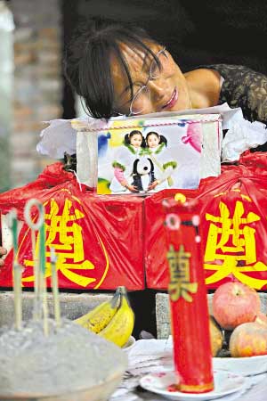 昨天,在自己倒塌的房屋前,趙德琴給兩個(gè)孩子設(shè)了一個(gè)小靈堂,她抱著兩個(gè)孩子的遺像,溫柔地說(shuō)著:“孩子,我們分別10天了!彼(jiàn)人就說(shuō):“琦琦在母親節(jié)那天把我?guī)У揭粋(gè)餐館里,用她的零花錢(qián)給我準(zhǔn)備了一頓飯,還突然地從身后拿出一枝花,她好幾天前就說(shuō)過(guò)要給我一個(gè)驚喜的。我還沒(méi)告訴她‘琦琦,媽媽那次真的很驚喜。’”