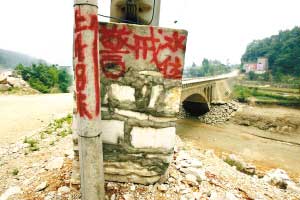 震后十多天,這位鄉(xiāng)干部對(duì)數(shù)字的敏感性越來(lái)越高,在他的腦海中,村里上游唐家山堰塞湖每一點(diǎn)細(xì)微的變化都關(guān)乎著幸存者的性命!疤萍疑綁胃110多米,前兩天領(lǐng)導(dǎo)跟我們開會(huì)的時(shí)候說(shuō),現(xiàn)在水深已經(jīng)達(dá)到90多米,每天還在升高3米左右。最壞的情況是完全潰壩,整個(gè)綿陽(yáng)110多萬(wàn)人都要受到影響。”韓國(guó)君說(shuō),雖然水流夾雜泥石到村里還要40多分鐘,但為了萬(wàn)無(wú)一失,村里已經(jīng)設(shè)立了三個(gè)觀察哨所,一旦洪水來(lái)臨,將拉響警報(bào),讓還留在家里的村民趕緊上山避險(xiǎn)。