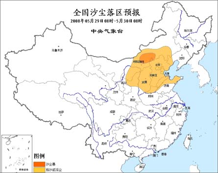 中新網(wǎng)5月29日電 中央氣象臺今天早晨六點鐘繼續(xù)發(fā)布沙塵天氣預(yù)報: