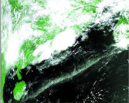 昨日上午10時16分10秒,廣州氣象衛(wèi)星地面站成功接收到風(fēng)云三號01星的第一幅衛(wèi)星云圖。云圖顯示,昨日廣東佛岡、龍門、河源三地出現(xiàn)了大暴雨,不少地區(qū)有強(qiáng)降水。