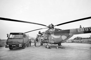 成空某部正為執(zhí)行救援任務(wù)的直升機加油。劉應(yīng)華攝