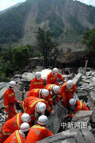 ——山東省消防總隊(duì)官兵徒步進(jìn)入汶川映秀鎮(zhèn)搶險(xiǎn)記