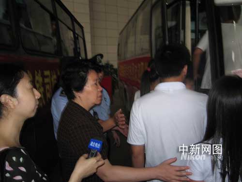 湖北省副省長(zhǎng)張岱梨(左二)送災(zāi)區(qū)學(xué)生上車(chē)。作者:艾啟平