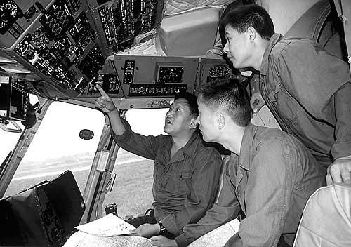 機(jī)長邱光華,51歲,羌族,四川茂縣人。 1957年4月出生,1974年4月入伍,1976年6月入黨,大專文化,大校軍銜,四種氣象飛行指揮員、副師職特級(jí)飛行員,近年多次執(zhí)行軍事演習(xí)、衛(wèi)星回收和搶險(xiǎn)救災(zāi)等重大任務(wù),總飛行時(shí)間5800多小時(shí),榮立二等功2次,三等功4次。