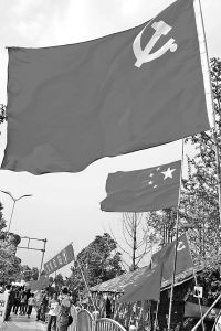 飄揚的紅旗在災區(qū)隨處可見(張雷/攝)