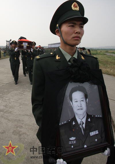 今天上午10時(shí)30分,運(yùn)送失事直升機(jī)機(jī)組成員靈柩的汽車,緩緩駛進(jìn)某陸航團(tuán)鳳凰山機(jī)場(chǎng)。迎送烈士靈柩儀式正式開(kāi)始。