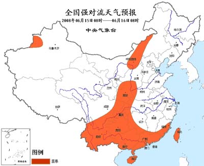 中新網(wǎng)6月15日電 中央氣象臺(tái)今晨六點(diǎn)鐘發(fā)布暴雨預(yù)報(bào):