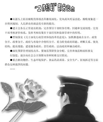 這一規(guī)劃確定,未來5年的反腐工作目標是,“建成懲治和預防腐敗體系基本框架,拒腐防變教育長效機制初步建立,反腐倡廉法規(guī)制度比較健全,權(quán)力運行監(jiān)控機制基本形成,從源頭上防治腐敗的體制改革繼續(xù)深化,黨風政風明顯改進,腐敗現(xiàn)象進一步得到遏制,人民群眾的滿意度有新的提高”。