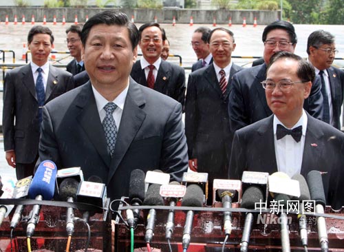 國家副主席習(xí)近平6日上午經(jīng)落馬洲抵港后發(fā)表簡短講話。中新社記者 任海霞 攝