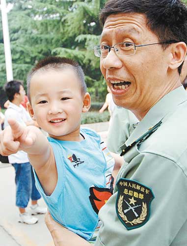 ·“敬禮娃娃”郎錚:“這個親我的爺爺是誰”(圖)