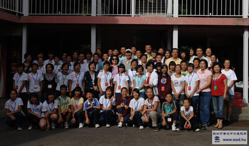 張春祥大使見到孩子們的第一句話是:孩子們,你們好!這兩天在這里玩得開心嗎?大家異口同聲的回答,很好,非常開心,謝謝大使!我們還寫了日記,并和外國小朋友們交流學習英語,我們還去游泳,下雨的時候我們在房間里學習做手工、學習跳舞等等。