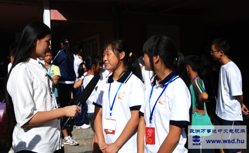《歐洲萬事達報》十三歲的特約小記者陳藝捷采訪了地震災(zāi)區(qū)的學生劉一姍與趙宇,他們告訴記者,我們來到這里很快樂,剛開始不是太習慣,因為我們四川愛吃辣椒,菜以辣為主,這里的匈餐很少吃到辣的菜,在飲食方面開始有些不適應(yīng),現(xiàn)在好多了慢慢適應(yīng)了。(文/宋聚芳 攝影/陳雷)