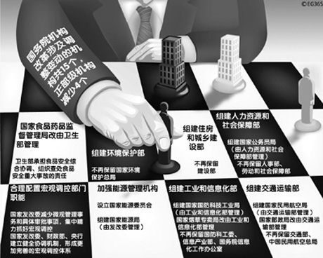至今,國(guó)務(wù)院組成部門(mén)、直屬機(jī)構(gòu)和各部委先后上報(bào)了各自的“三定”方案,并陸續(xù)獲得通過(guò)。