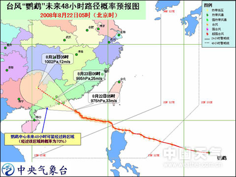 臺風(fēng)“鸚鵡”未來48小時路徑概率預(yù)報圖