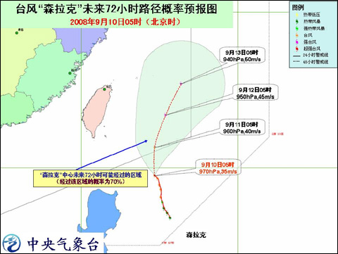 9月10日臺風(fēng)“森拉克”未來72小時路徑概率預(yù)報圖