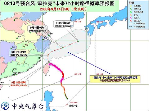 由于“森拉克”強度強、移動慢、對我國近海影響時間較長,浙江和福建沿海地區(qū)尤其要做好防范工作。