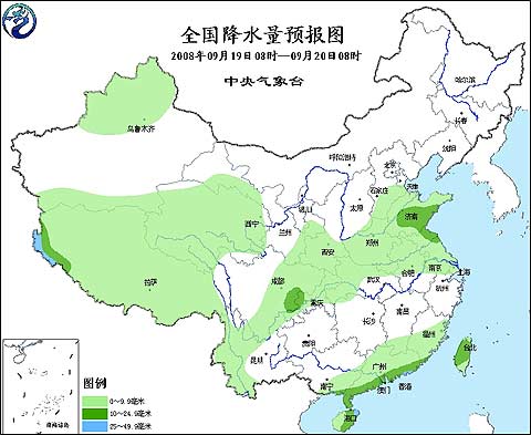 2008年9月19日8時—9月20日8時全國降水量預(yù)報圖