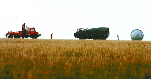 這片草場大體位于“神五”、“神六”著陸的位置之間,距二者均約10公里。記者在現(xiàn)場看到,模型傾斜倒在草場,身穿“中國航天搜救”制服的人員證實,這是“神七”主著陸場最后一次大型綜合演練。