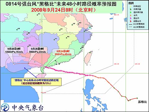 “黑格比”24日08時(shí)未來(lái)48小時(shí)路徑概率預(yù)報(bào)圖