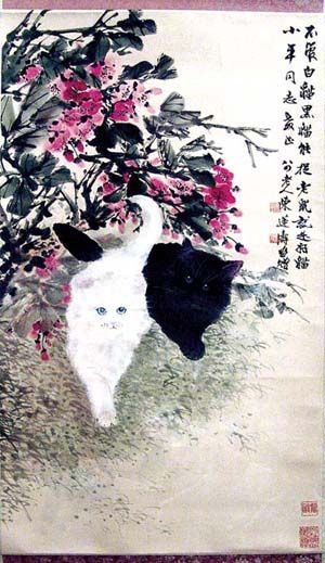 鄧小平家中也掛有一幅《雙貓圖》。一只貓毛色雪白、茸毛輕柔,另一只貓毛色烏黑、黑里透亮。畫的上方,是幾行遒勁蒼老的題詞:“不管白貓黑貓,會捉老鼠就是好貓!碑嬚呤潜蛔u為“江南貓王”的著名畫家陳蓮濤。