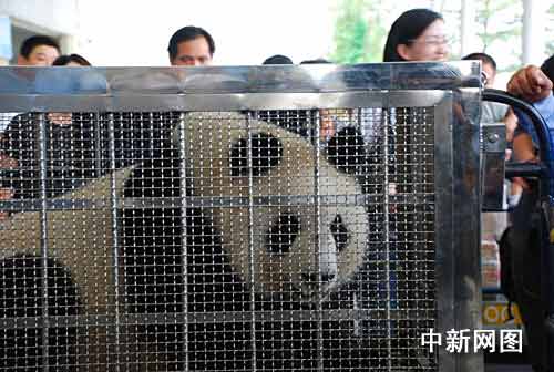 小家伙呆在鐵籠里正被工作人員小心翼翼地抬起來(lái)搬到貨車(chē)上去。作者:周航健