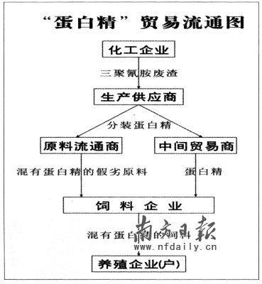 這是化工產(chǎn)品三聚氰胺在飼料行業(yè)內(nèi)非法添加的第一個曝光案例。一位業(yè)內(nèi)人士透露,早在2004年,該公司就開始生產(chǎn)“生物蛋白精”,并在網(wǎng)上公開求購三聚氰胺廢料。