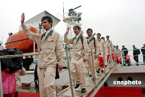 中新網(wǎng)舟山11月2日電(見(jiàn)習(xí)記者 夏毅 通訊員 韋曉光)十一月二日上午九時(shí)許,在中國(guó)海事局、中國(guó)海上搜救中心的全力救助以及韓、日兩國(guó)海事部門的協(xié)助下,被三艘外籍漁業(yè)輔助船挾持了十三天的十五名中國(guó)公民安全回到了祖國(guó)的懷抱。