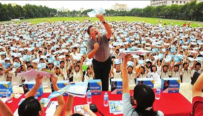 大約4年后,在甘肅蘭州,蘭大畢業(yè)生李陽創(chuàng)辦的《瘋狂英語》,依靠“教人張嘴說英語”的一招鮮,也開始了持續(xù)10多年風(fēng)靡大江南北的歷程。