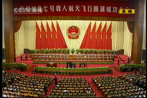 中新網(wǎng)11月7日電 慶祝神舟七號載人航天飛行圓滿成功大會今天上午10點在人民大會堂召開。