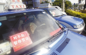 因不滿承包金過高、黑車橫行、出租車承包一年一簽的新規(guī)等問題,三亞部分出租車今天(10日)停止?fàn)I運(yùn)(見上圖,記者程范淦攝),給市民和游客的出行帶來了諸多不便。