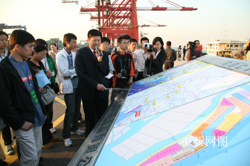 11月11日,廣州港南沙港區(qū)負責人向網絡媒體記者介紹南沙港區(qū)情況
